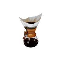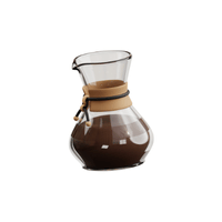 A clean and smooth pour-over coffee made in a Chemex glass pot.