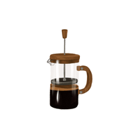 Coffee brewed by steeping grounds in hot water and pressing with a plunger.