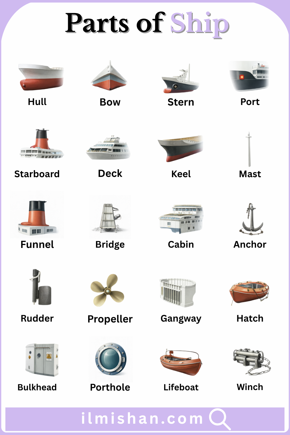 Common Parts of Ship with their Names and Pictures