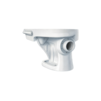 A toilet waste outlet that directs discharge horizontally into a wall drain instead of the floor.