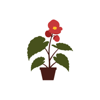 A shade-loving plant with bright red, pink, purple, or white flowers that bloom continuously in warm seasons.