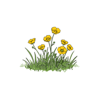 A small plant with shiny yellow petals, often found in meadows and grassy fields during spring and summer.