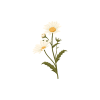 A cheerful plant with white petals and a yellow center, symbolizing innocence and freshness.