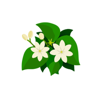 A tropical shrub with creamy white, fragrant flowers and shiny dark green leaves, popular in perfumes.