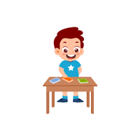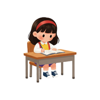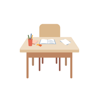 A personal table where students study, write, or use learning tools, often paired with a matching chair.