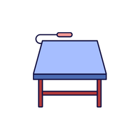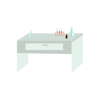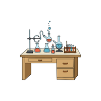 A strong table used for scientific demonstrations or classroom experiments, often featuring durable surfaces and storage.