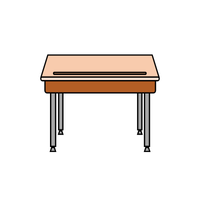 A strong table found in schools, providing space for students to write, read, and complete classroom tasks.
