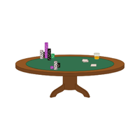 A padded table with cup holders and chip trays, specially made for poker or other casino card games.