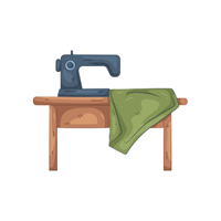 A table with storage and machine space, built to hold sewing equipment and organize fabrics for stitching projects.