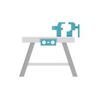 A heavy-duty table for carpentry, metalwork, or repairs, offering a solid surface to handle tools and materials.