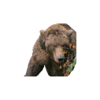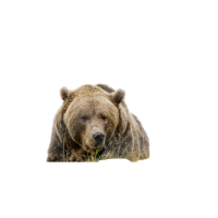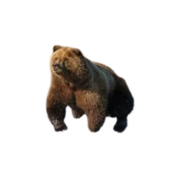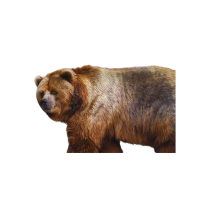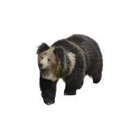 A North American brown bear subspecies, known for shoulder hump and aggressive defense behavior, living inland and feeding on plants, fish, and large prey.