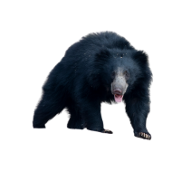 A shaggy black bear native to the Indian subcontinent, specialized for eating termites and ants, using long claws and lips, and known for nocturnal habits.