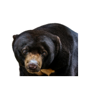 The smallest bear species, native to Southeast Asia, with short black fur and a pale chest patch, feeding on insects, honey, fruits, and small animals.