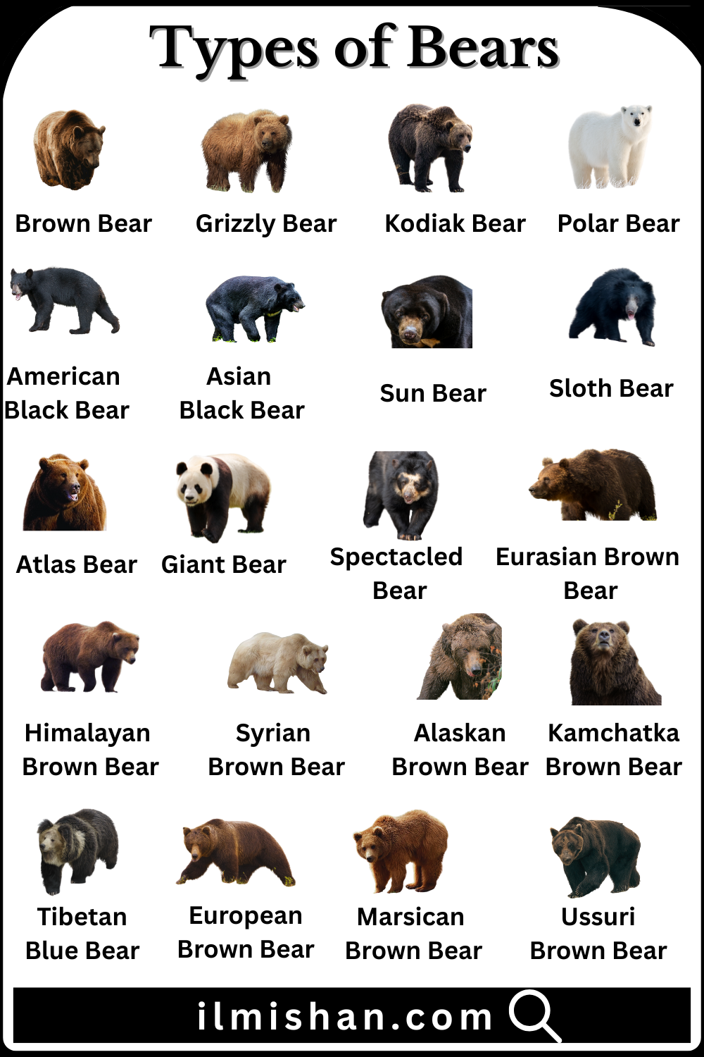 Bears are powerful and fascinating animals known for their strength, intelligence, and unique way of living in the wild. They are found in different parts of the world, from icy Arctic regions to dense forests and mountains. Each type of bear has its own name, size, color, and habits, which make it easy to tell them apart when you know the basics. In this article, you will learn different types of bear breeds with their names in English and clear pictures to help you recognize each one easily. The explanation is kept simple and natural so readers of all ages can enjoy learning about these amazing animals.