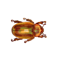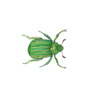 A colorful beetle that feeds on flowers and pollen. It is commonly found in gardens and helps with pollination.