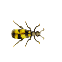 A small beetle that feeds on cucumber and melon plants. It damages leaves and spreads plant diseases.