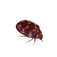 A household beetle whose larvae damage fabrics. It feeds on wool, carpets, and animal-based materials.