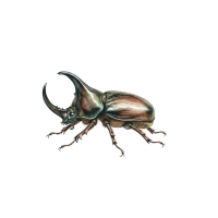 One of the largest beetles in the world. It has long horns and lives in rainforests, feeding on rotting wood and fruit.
