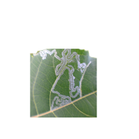 A beetle whose larvae live inside leaves. They create visible tunnels while feeding between leaf layers.