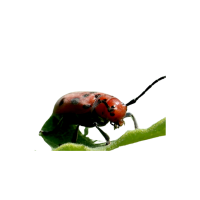 A small beetle that feeds on plant leaves. Some species damage crops, while others live harmlessly in natural habitats.