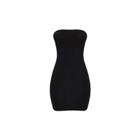 A strapless dress with a straight, band-like top wrapping around the bust for a minimalist, contemporary style perfect for parties or summer events.