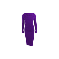 A fitted dress decorated with soft, gathered fabric layers along sleeves, hem, or neckline, adding playful movement and feminine charm while keeping the sleek, body-hugging silhouette.
