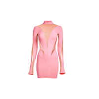 Incorporates sheer, net-like fabric sections within the dress for stylish contrast and breathable comfort while keeping a fitted silhouette, popular for modern party or club wear.