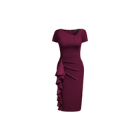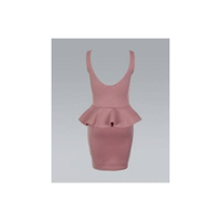 Features a short flared ruffle or overskirt at the waist, highlighting the midsection while keeping a sleek bodycon fit for a chic and structured appearance.