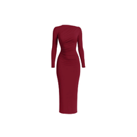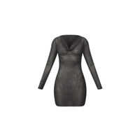 Soft, folded fabric creates flowing layers across the body, giving elegant movement and sophistication while maintaining a close, flattering fit that outlines natural curves.