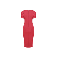 Features voluminous, gathered sleeves at the shoulder or upper arm, bringing a romantic, vintage-inspired touch to the figure-hugging silhouette.