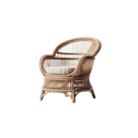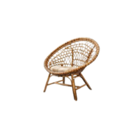 A chair crafted from natural rattan material, lightweight and stylish, commonly used indoors or outdoors for relaxed seating and decorative appeal.