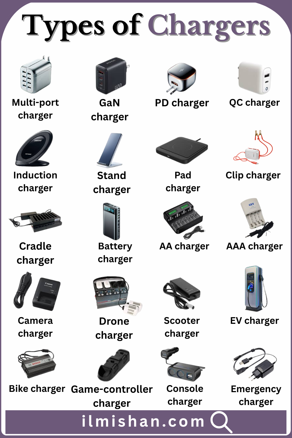 Different Types of Chargers with Names and images