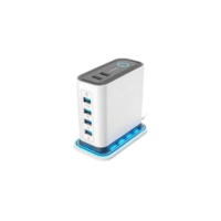 A multi-port charger designed for desks, allowing several devices to charge simultaneously from one power source.