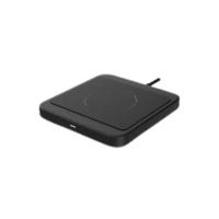 A flat wireless charging pad where devices are placed to charge, offering simple use without cables for compatible smartphones and accessories.