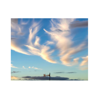 Thin, wispy high-level clouds made of ice crystals, usually forming delicate streaks across the sky and often signaling fair weather or a coming change in weather conditions.