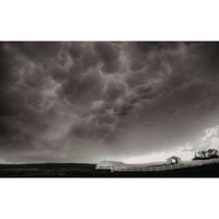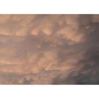 Thunderstorm clouds showing pouch-like bulges hanging beneath the base.