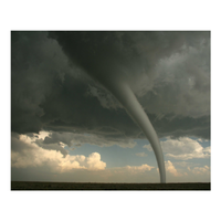 Funnel-shaped cloud descending from a storm cloud, sometimes becoming a tornado.