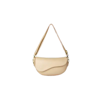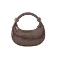 A handbag shaped like a half circle, offering a modern, curved design with enough space for essentials and comfortable carrying.