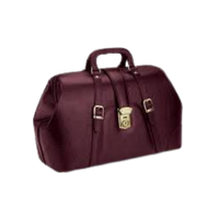 A structured bag with a wide opening and strong handles, traditionally used by doctors to carry medical tools, now also used as a stylish handbag.