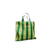 A reusable bag used for buying food or goods from markets, usually spacious and durable, designed to carry items comfortably and reduce plastic use.