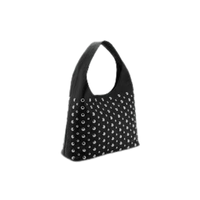 A handbag featuring metal studs on the exterior, giving a bold, edgy look while maintaining durability and fashionable appeal for casual or party wear.