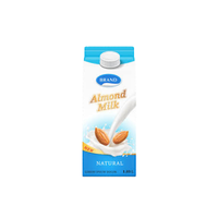 Milk alternative made from ground almonds and water, light and nutty in flavor, low in calories, commonly used in beverages and cereals.