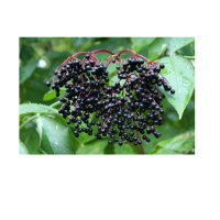 A small deep purple berry growing in clusters, commonly cooked into syrups, jams, or drinks, traditionally valued for flavor and seasonal culinary uses.