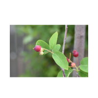 Also called serviceberry, a small purple fruit with sweet almond-like flavor, eaten fresh or used in pies and preserves.