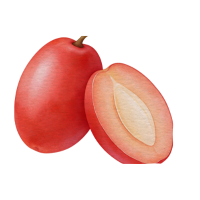 A tropical fruit with reddish-purple skin, extremely sour taste, mostly processed into powders or juices rather than eaten fresh.