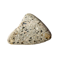 A sedimentary rock made of rounded stones cemented together. It forms in riverbeds and is used as decorative stone.