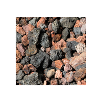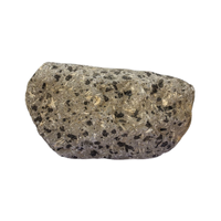 A dark volcanic rock with many air holes. It forms from lava and is used in landscaping and construction.