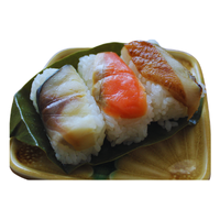Regional sushi served on bamboo leaves, topped with fish, vegetables, or egg, often enjoyed during festivals or special occasions.