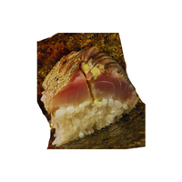 A type of pressed sushi from Osaka, usually made with marinated mackerel layered over rice and shaped into rectangular pieces.