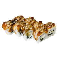 Sushi roll combining eel, avocado, and cucumber, sometimes topped with sauce, known for rich taste and smooth, satisfying mouthfeel, enjoyed as a filling classic roll in many sushi restaurants worldwide.